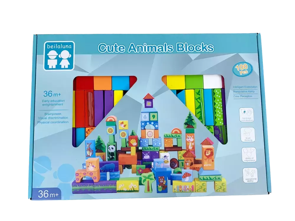 ¡Deja volar la imaginación de tus peques con nuestros 100 bloques de madera! Este set es ideal para niños a partir de 3 años y les permite construir su propio zoo de manera divertida y educativa.
